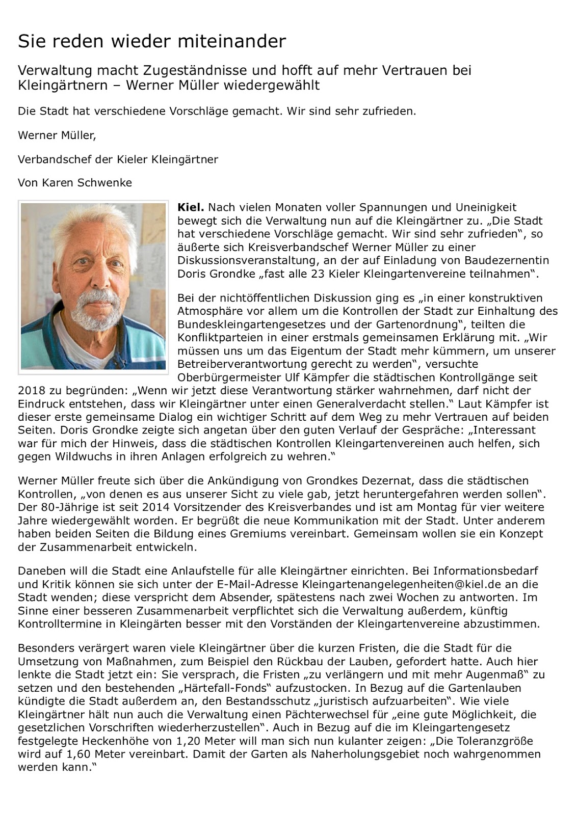 (Die Einzelheiten des Vergleichs zwischen der Landeshauptstadt Kiel und dem Kreisverband Kiel der Kleingärtner e. V. vom 25.09.2017 können in der Geschäftsstelle eingesehen werden.)